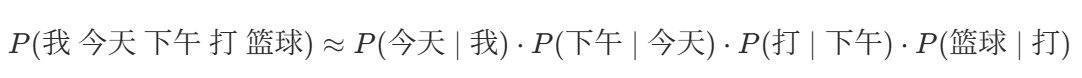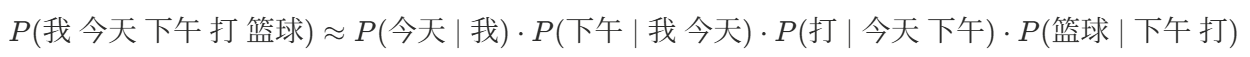 ≈P(今天∣我)⋅P(下午∣今天)⋅P(打∣下午)⋅P(篮球∣打)