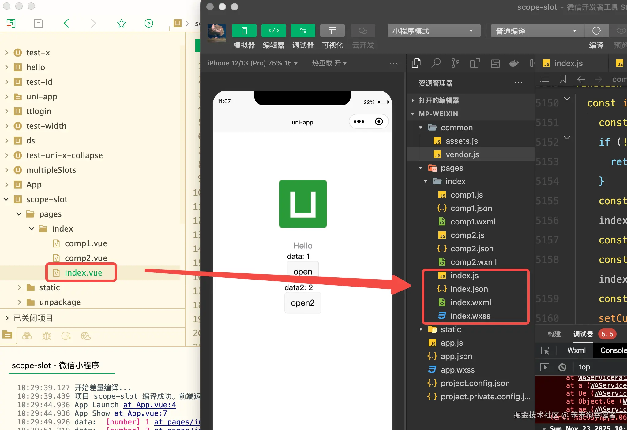 uniapp 编译到 小程序,一个 vue 组件编译结束之后会生成四个文件,以微信小程序举例