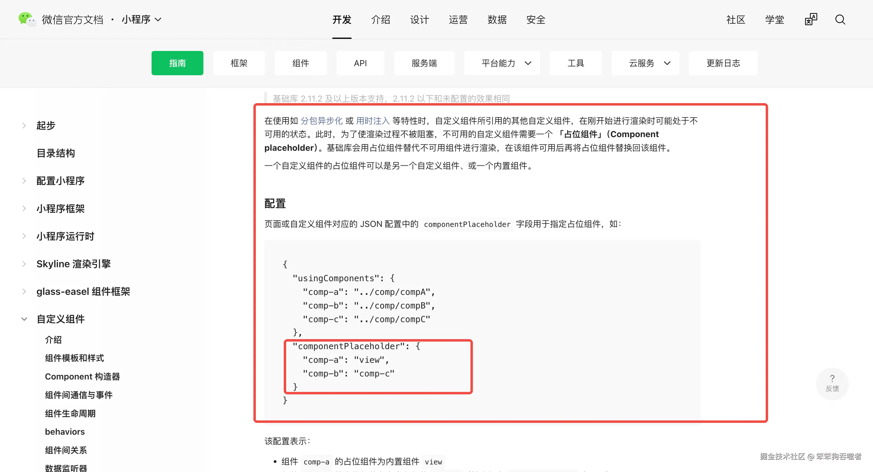 同时还考虑到有些开发者会针对不同的小程序平台添加不同的配置,component-config 代码块中的内容也支持 条件编译