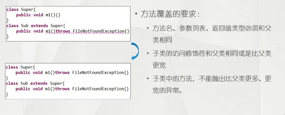(3) 语法:修饰符 返回值类型 方法名(形参列表)throws 异常类名1,异常类名2,异常类名3{}