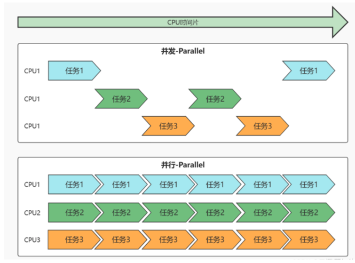 同一时间内,单核cpu只能处理一条线程,而我们的多线程执行的时候就是cpu在多线程之间快速进行切换操作,而现在我们使用的基本都是多核cpu,比如我们经常听到的四核八核之类的,而随着多核的使用,多线程并行也可以实现