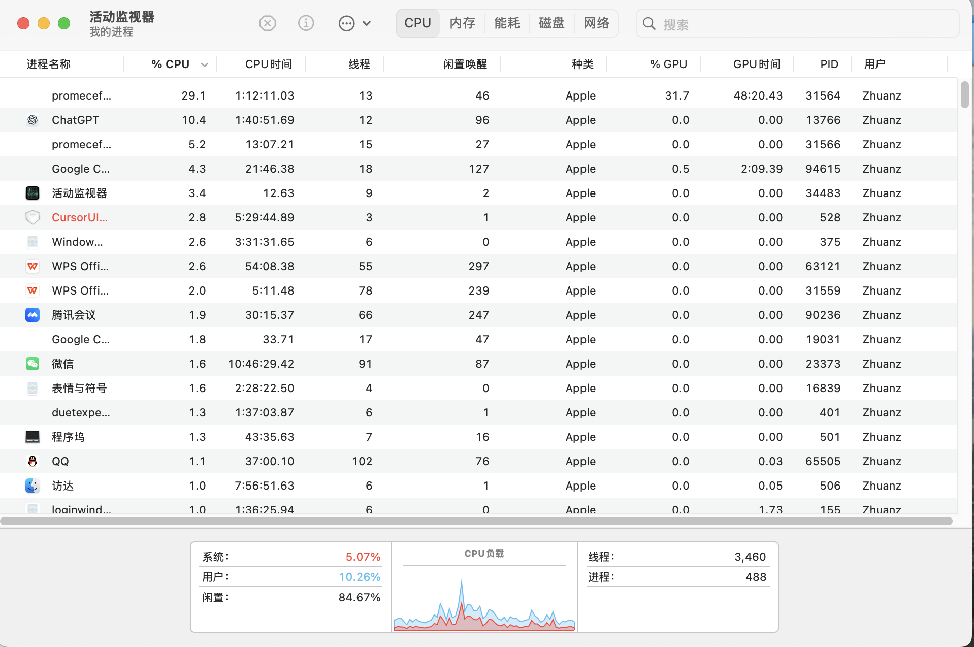 如图在活动检测器上我们能看到一个软件就是一个进程,然后同一个进程会有很多个线程
