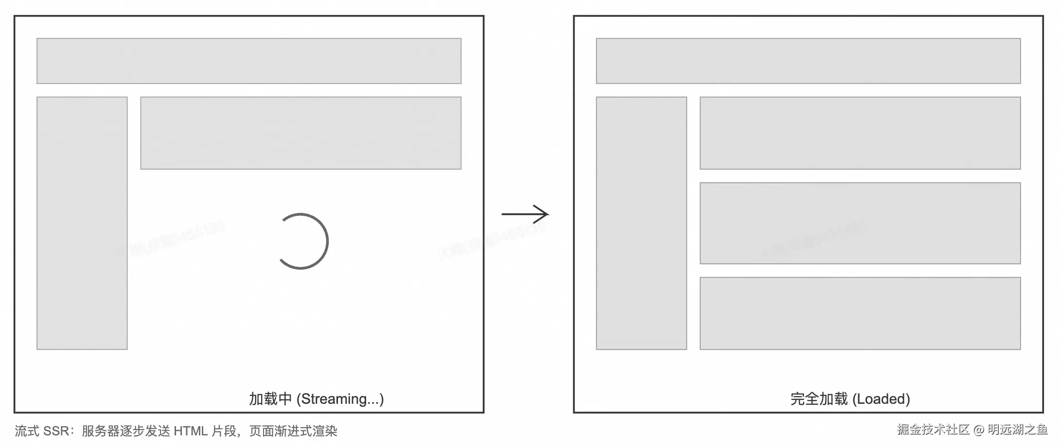 流式 SSR(Streaming Server-Side Rendering)是一种将服务端渲染和流式传输结合起来的技术。与传统的 SSR 不同,流式 SSR 可以在服务端渲染的同时,逐步将渲染结果传输到客户端,实现页面的渐进式展示。