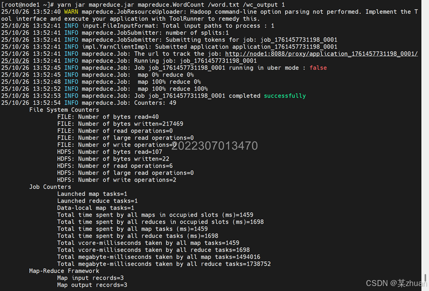 yarn jar mapreduce.jar mapreduce.WordCount /word.txt /wc_output 1