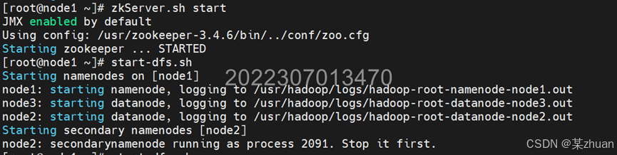| node1 | Jps, QuorumPeerMain, ResourcesManager, Namenode |