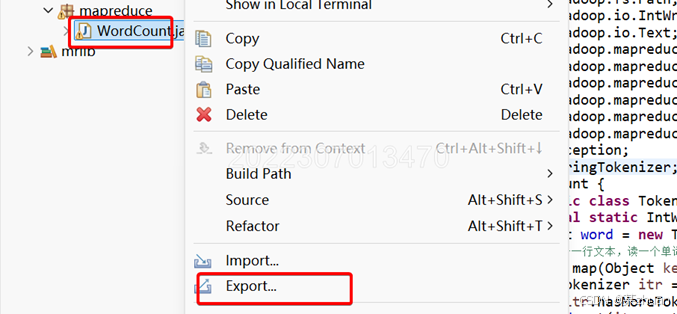 至此MapReduce代码编写完成。需要将导出的jar文件拷贝到虚拟机中。