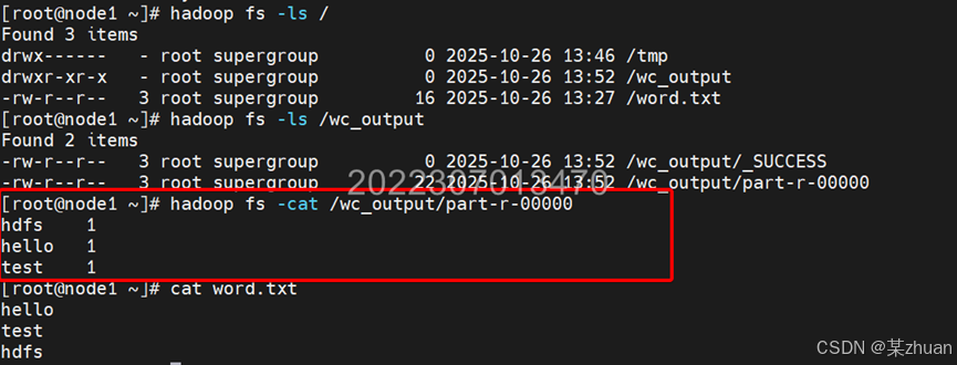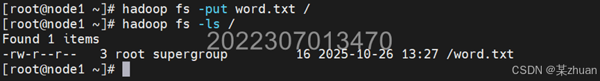 执行以下命令将文件上传到hdfs中,并查看hdfs中是否已有相关文件