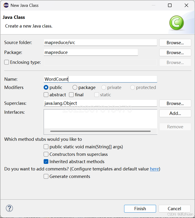 然后新建一个java类,将类名起名为WordCount。如果命名和这里不一样,后面代码需要对应修改