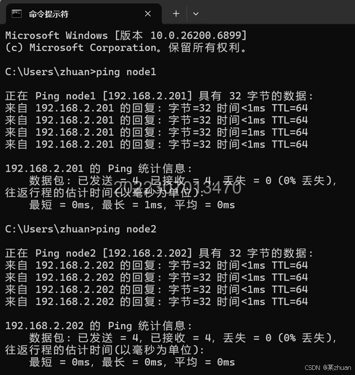 在cmd中ping node1,可以ping通,说明hosts配置完成。