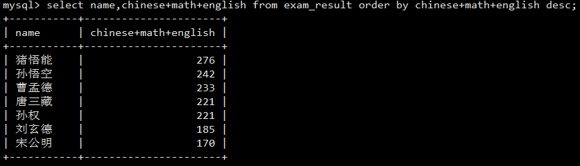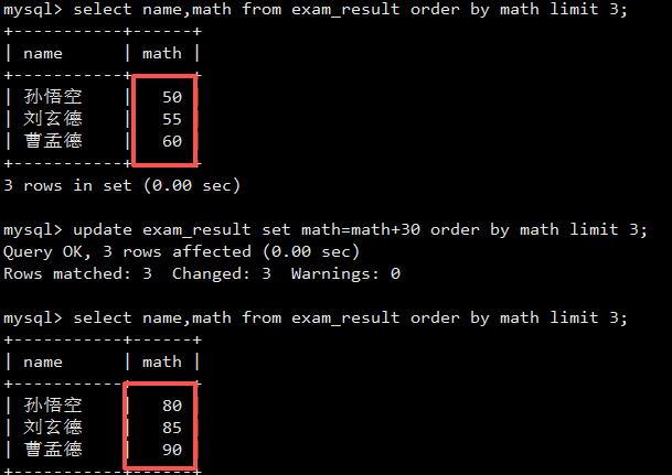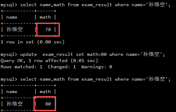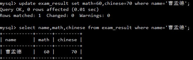 (2)将曹孟德同学的数学成绩变更为 60 分,语文成绩变更为 70 分