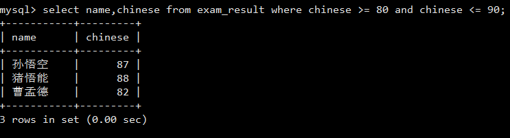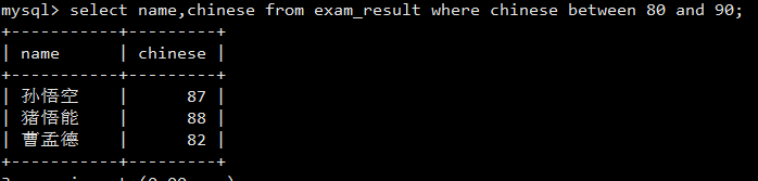 | BETWEEN a0 AND a1 | 范围匹配,[a0, a1],如果 a0 <= value <= a1,返回 TRUE(1) |