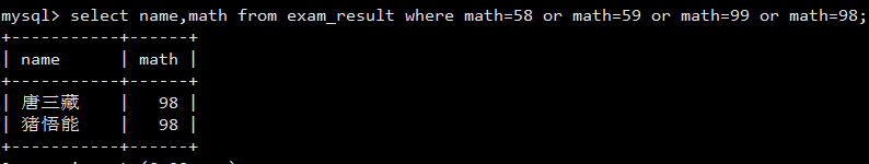 | IN (option, ...) | 如果是 option 中的任意一个,返回 TRUE(1) |