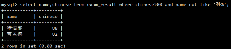 (7) 语文成绩 > 80 并且不姓孙的同学