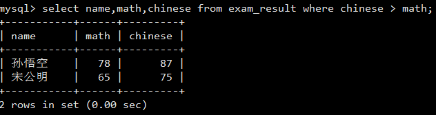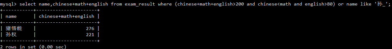 (8)孙某同学,否则要求总成绩 > 200 并且 语文成绩 < 数学成绩 并且 英语成绩 > 80
