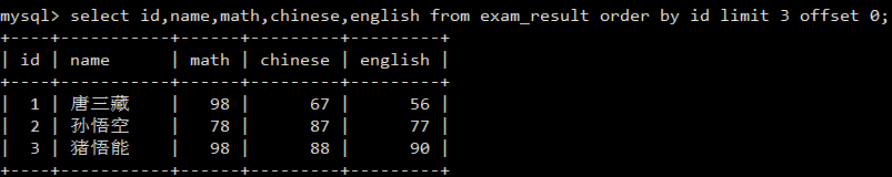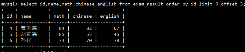 -- 从 s 开始,筛选 n 条结果,比第二种用法更明确,建议使用