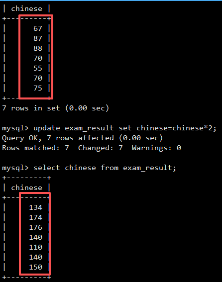 (4)将所有同学的语文成绩更新为原来的 2 倍