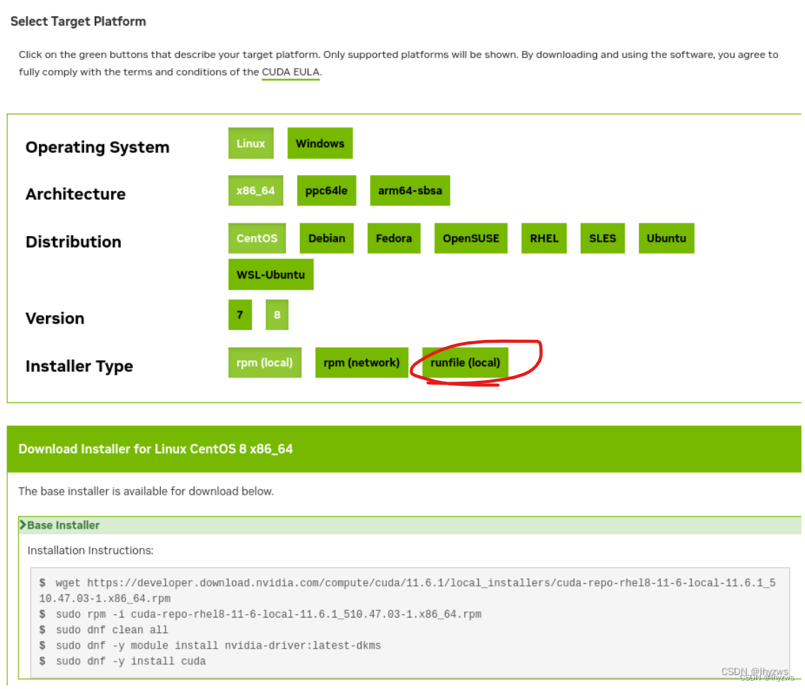 CUDA Toolkit最好也不要从NVIDIA官方给的链接中进入,否则会被导入到最新版本的驱动(535那个)和最新版本的CUDA Toolkit(12)的捆绑包中,这个安装会和我们之前的470安装产生冲突,同样可能是造成黑屏现象的幕后凶手。