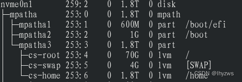 由于满插硬盘加满插NVME的关系,不幸的遭遇了多路径问题。系统将两块NVME都识别成了mpatha设备,造成没有安装系统的那条NVME无法格式化。