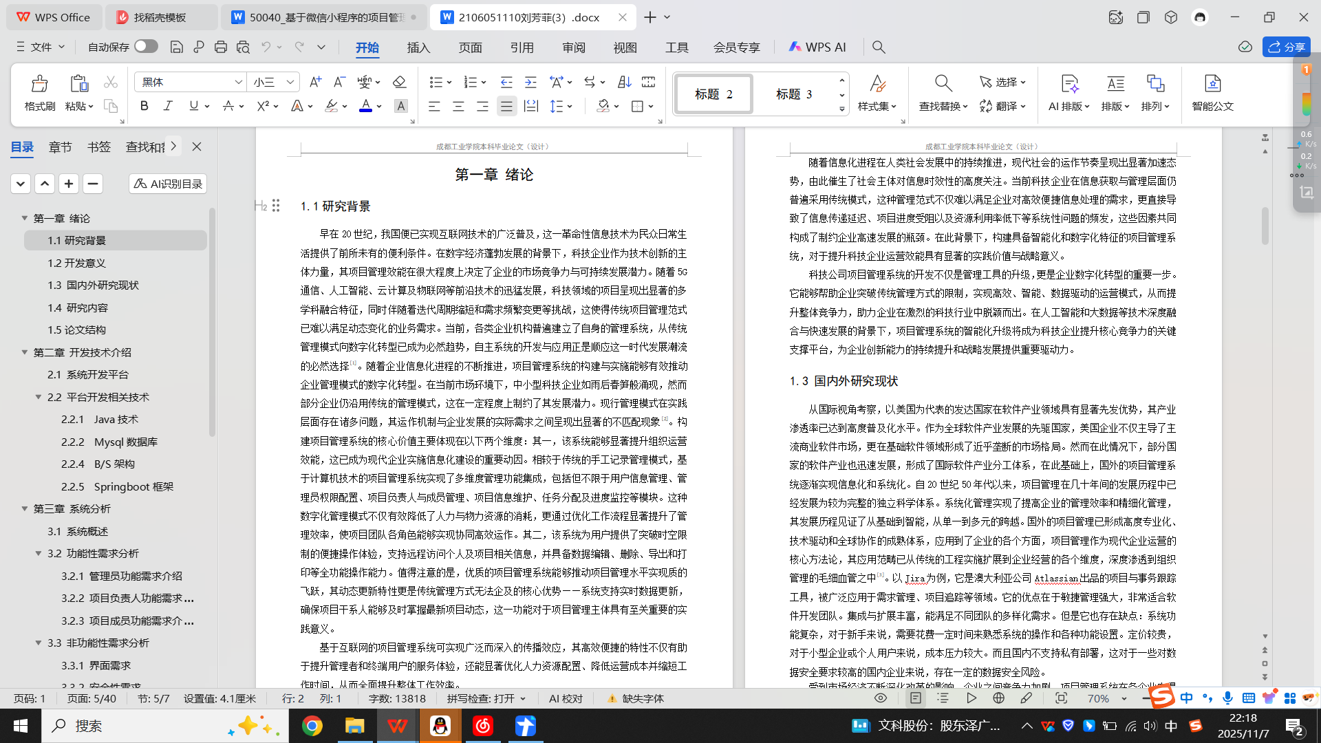 本文首先介绍了项目管理系统的发展背景与发展现状,基于系统需求分析结果,本研究首先完成了功能模块划分与数据库架构设计,随后依据总体功能模块设计方案构建系统开发框架,最终采用Springboot技术栈实现了项目管理系统的开发。经系统开发完成后,本研究对其开展了全面的测试验证工作,包括功能模块测试、单元组件测试以及系统性能测试三个关键环节。实验测试数据表明,所研发系统各项功能指标均达到预期设计要求,系统运行稳定可靠,未发现明显的功能缺陷或性能瓶颈。
