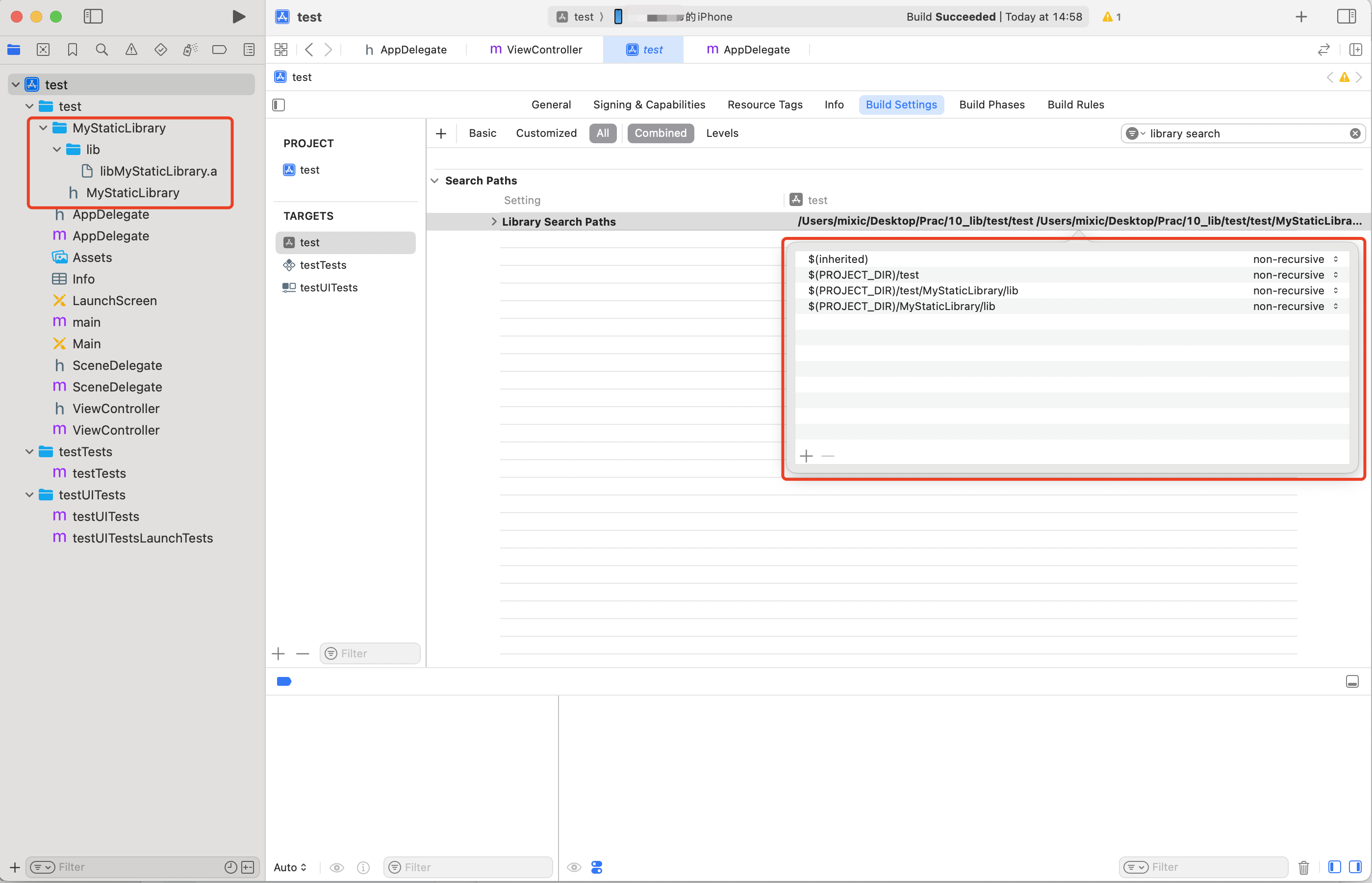 Library Search Paths = $(PROJECT_DIR)/MyStaticLibrary/lib
