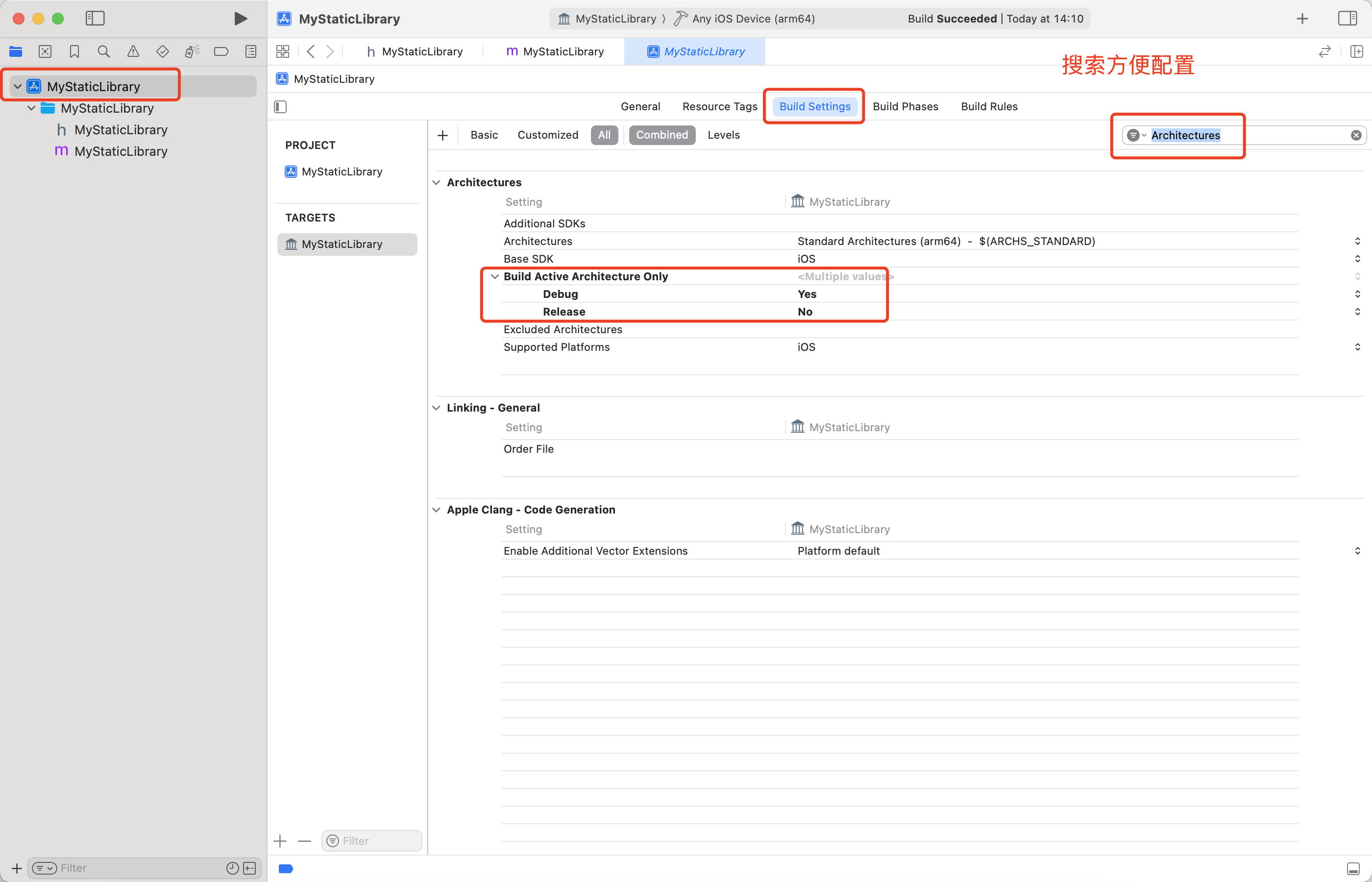 搜索 "libMyStaticLibrary.a" 或 "WriteAuxiliaryFile"