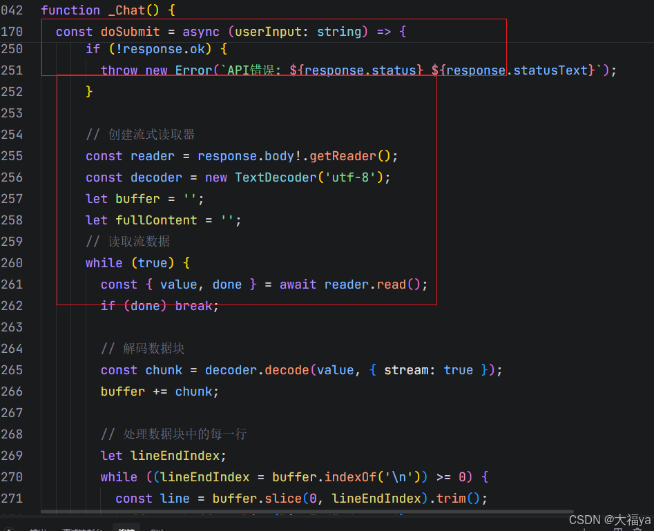 对OpenAI流式API,实现服务端SSE转发。服务端建立连接后,采用Transfer-Encoding: chunked逐步返回数据。