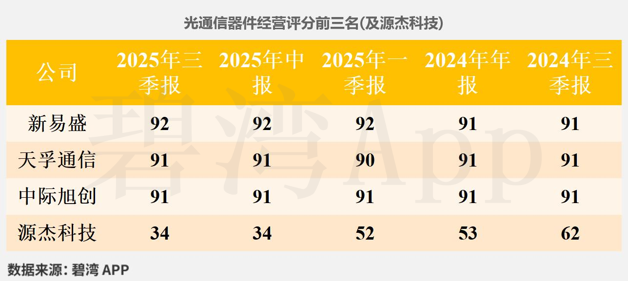 源杰科技在2025年三季报经营评分排名为第3084名,在光通信器件行业中排名为13名。