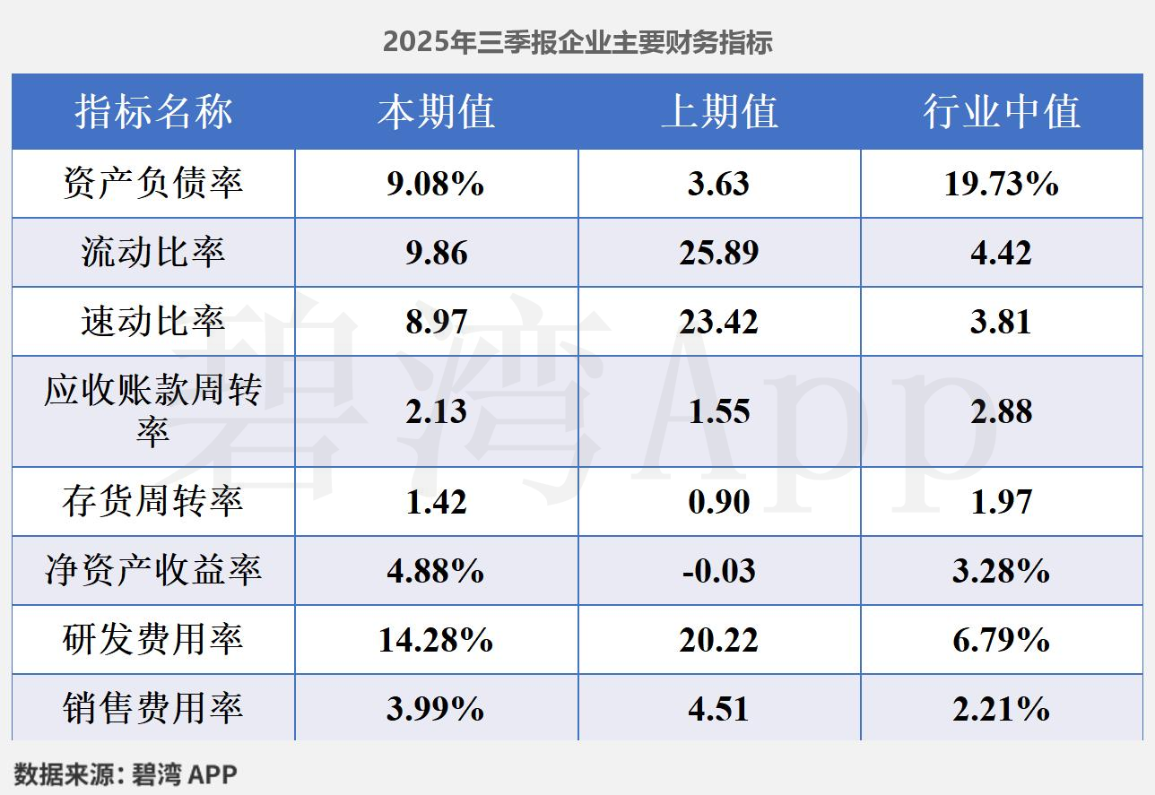 - 流动比率为9.86,较上年同期下降16.03(上年同期为25.89);指标值高于行业中值(行业中值为4.42),短期偿债能力显著优于行业平均水平。