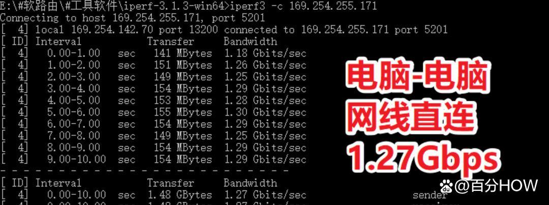 将两台电脑用网线直连,带宽依旧在 1.27Gbps,只有 2.5Gbps 的一半。