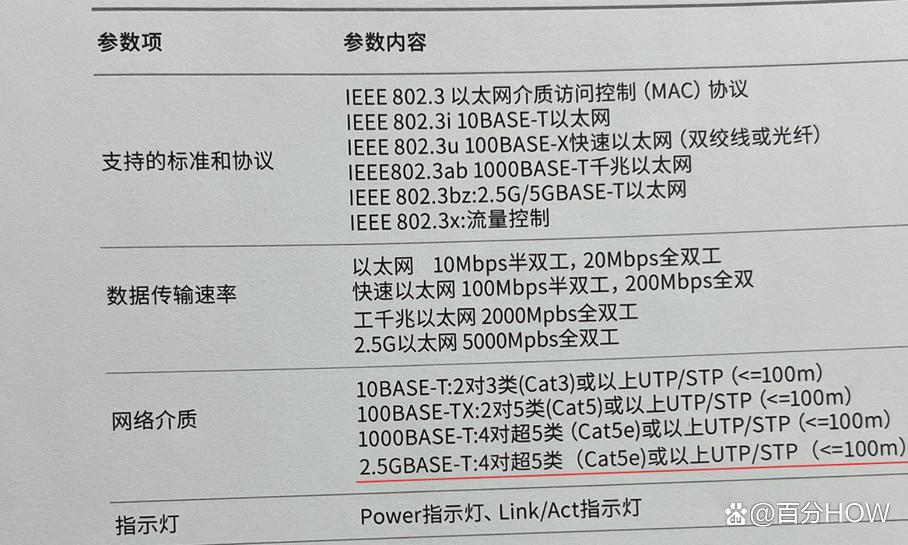 对于 2.5G 网络,100 米内 Cat5e 超五类网线完全够用。