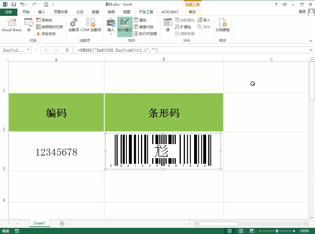 在工作表的指定位置绘制出条形码,拖动定位点设置条形码大小。