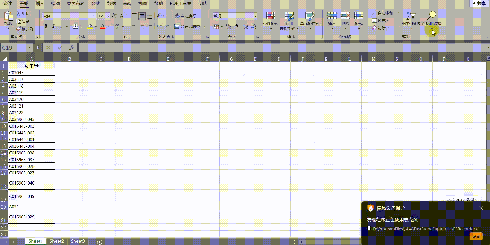 难点:如果直接查找A03*,Excel会将其识别为通配符模式,导致所有A03开头的数据都被选中。