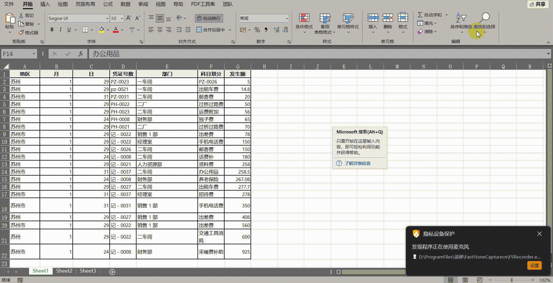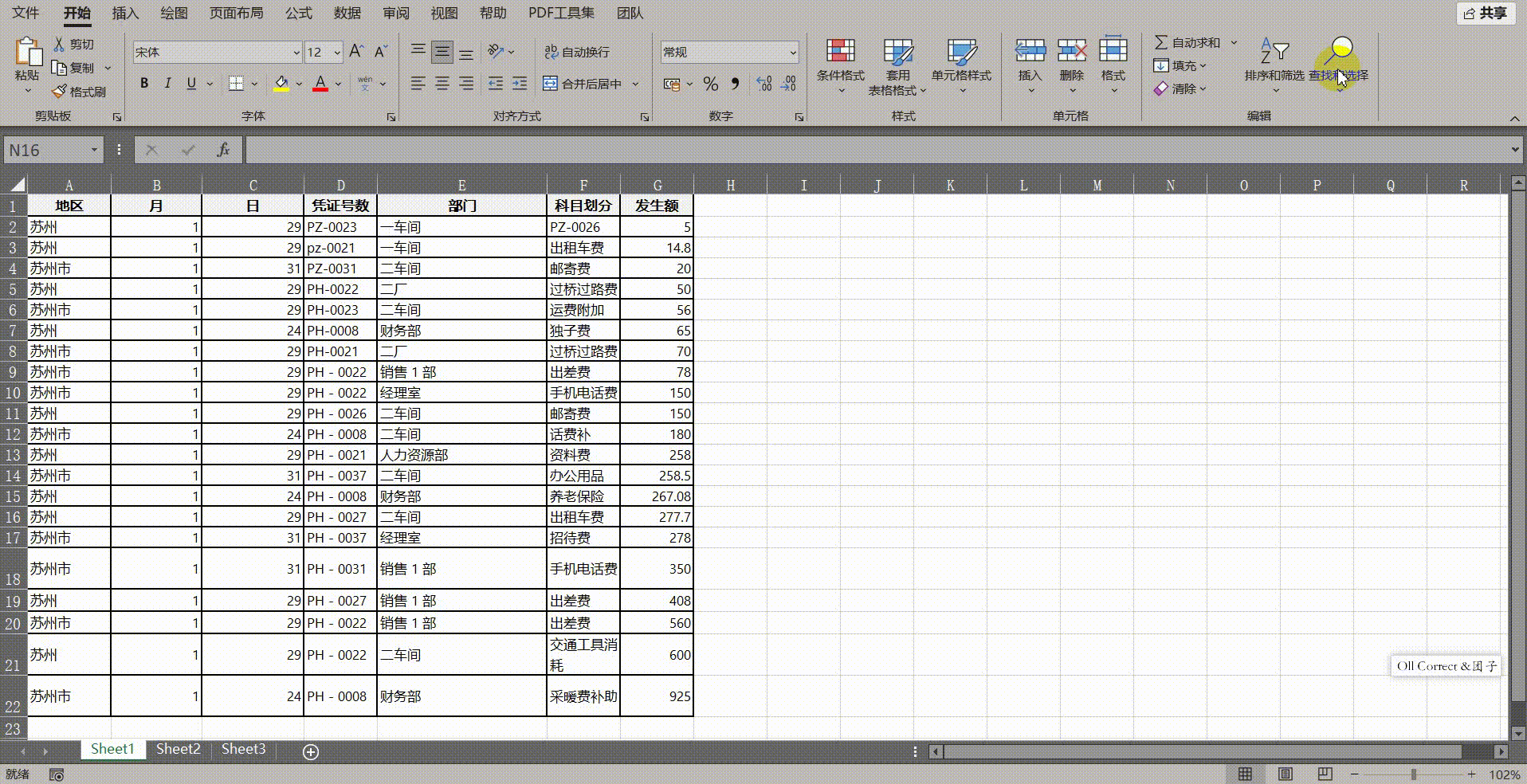 (2)选中数据区域→点击【开始】选项卡→【排序和筛选】,给表头列添加筛选按钮;
