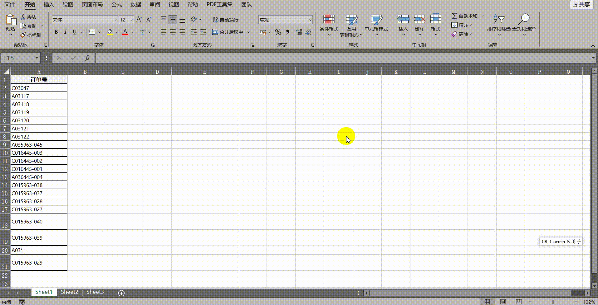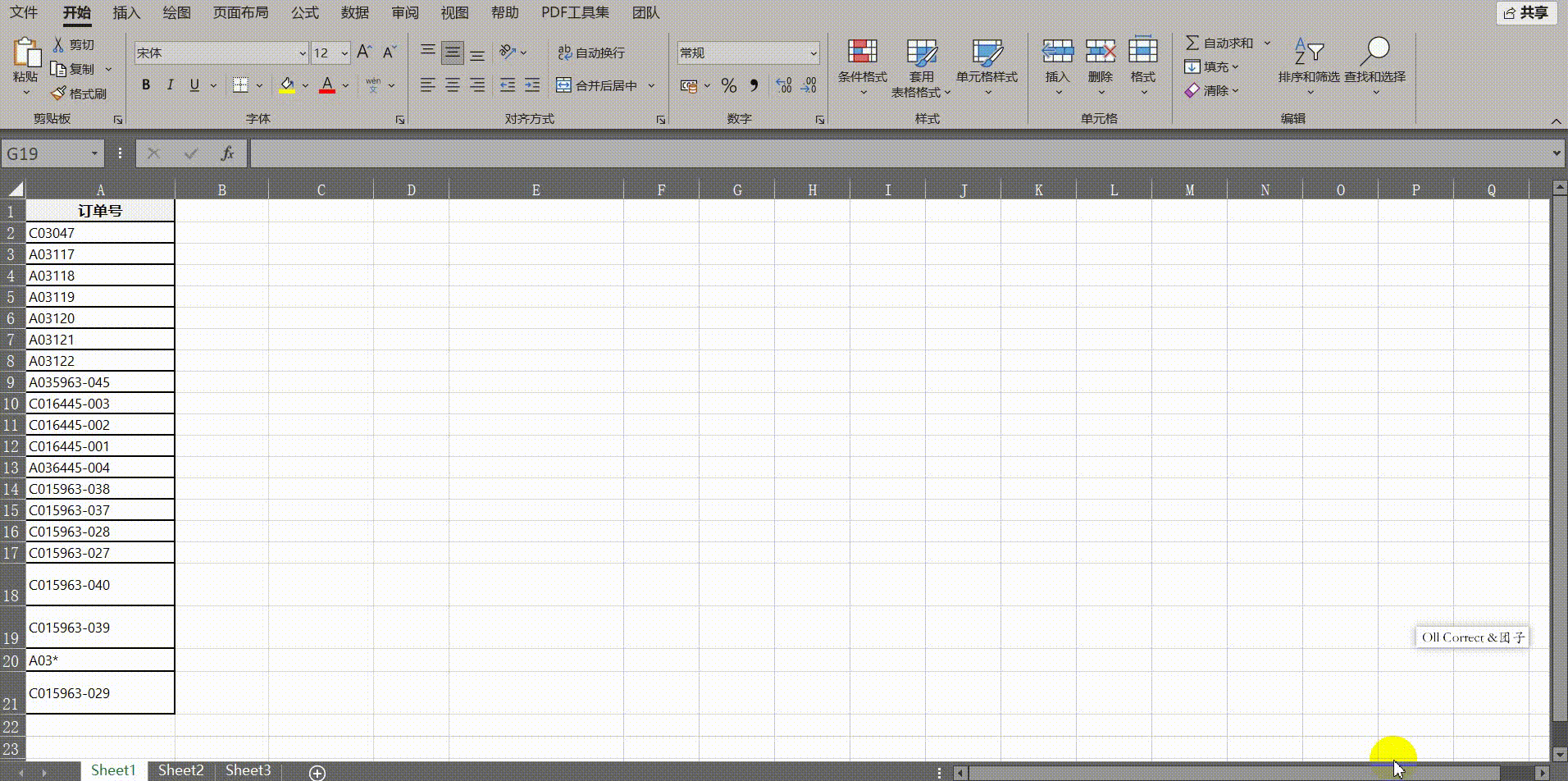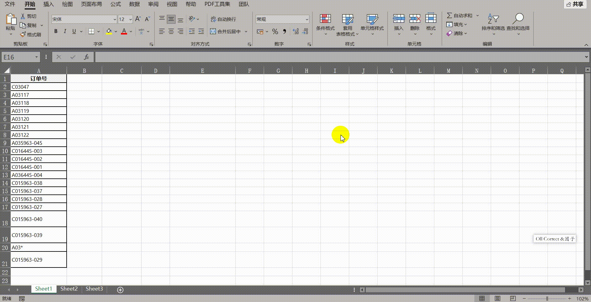 (5)效果:Excel仅会替换内容为A03* 的这一条数据,其他正常的A03订单号均不受影响。