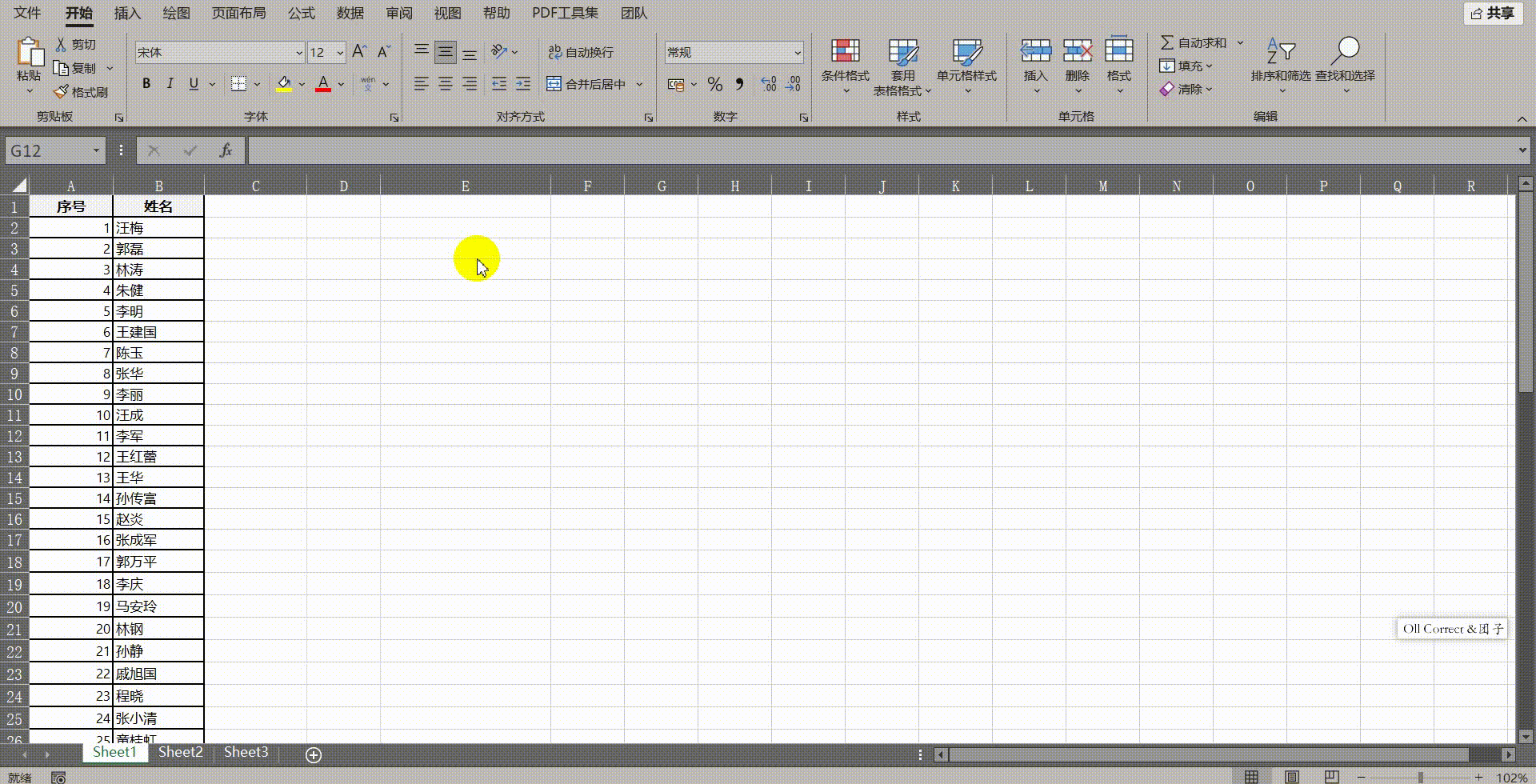 (3)Excel会自动识别数据规律,批量填充剩余单元格的用户名。