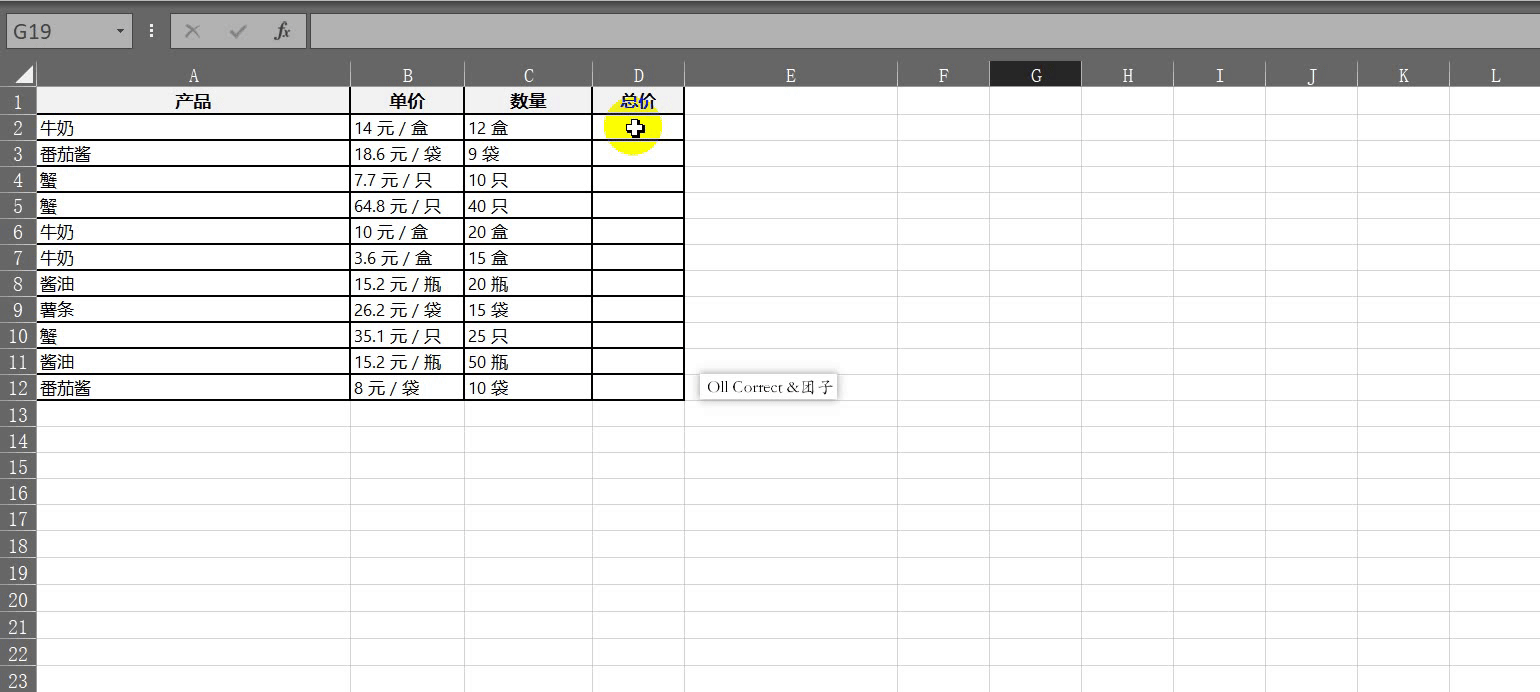 问题二:带单位数据的总价运算(错误数据中完成运算)