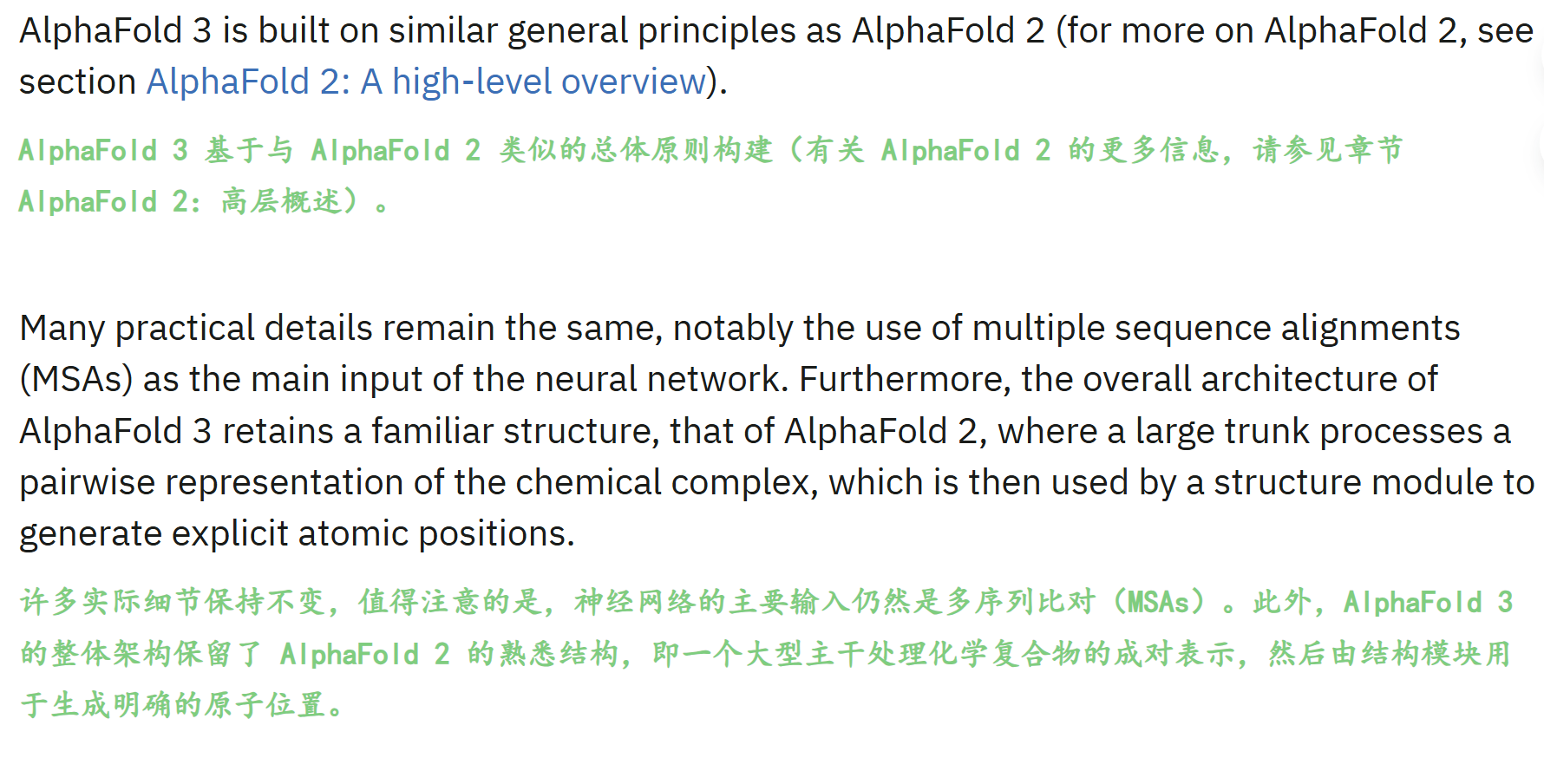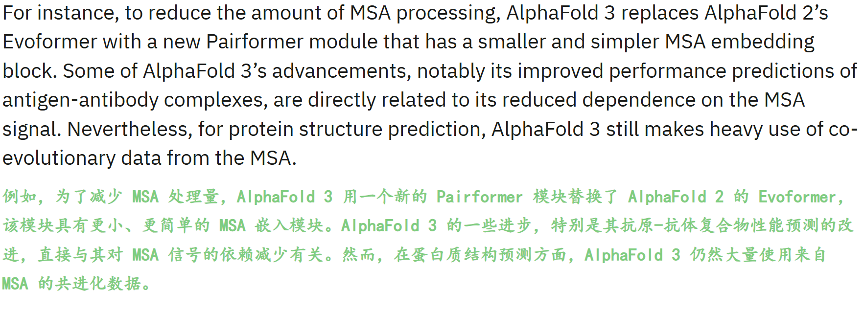 更正:AlphaFold3还是保留了MSA多序列比对部分的信息,以及模块处理