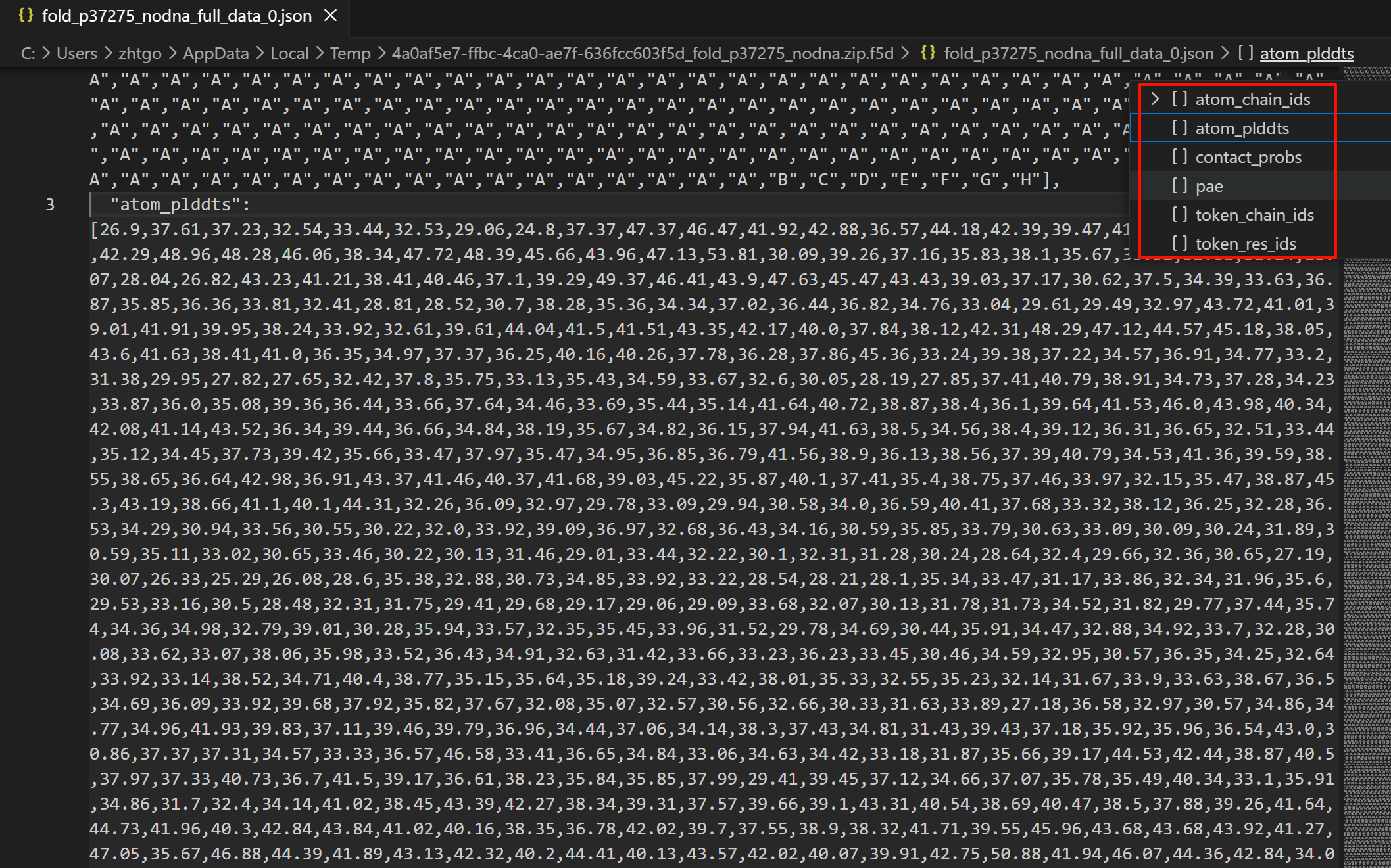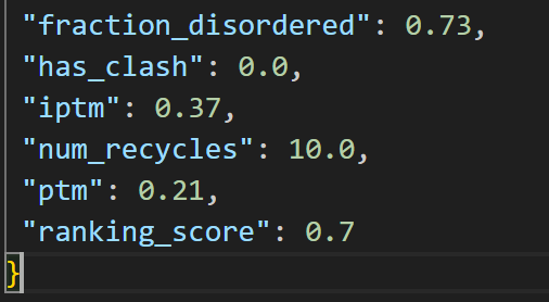 下面就是一个fold__summary_confidences_.json文件内容的示例,展示了多个置信度指标。