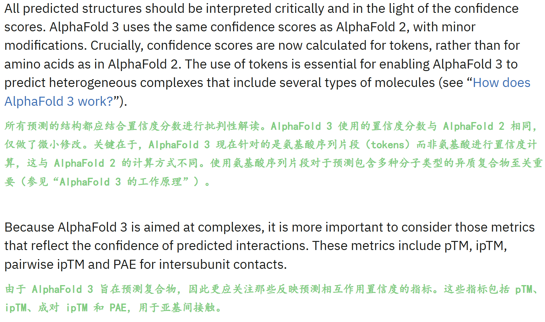 这一节培训内容也同样非常重要,参考:https://www.ebi.ac.uk/training/online/courses/alphafold/alphafold-3-and-alphafold-server/how-to-assess-the-quality-of-alphafold-3-predictions/