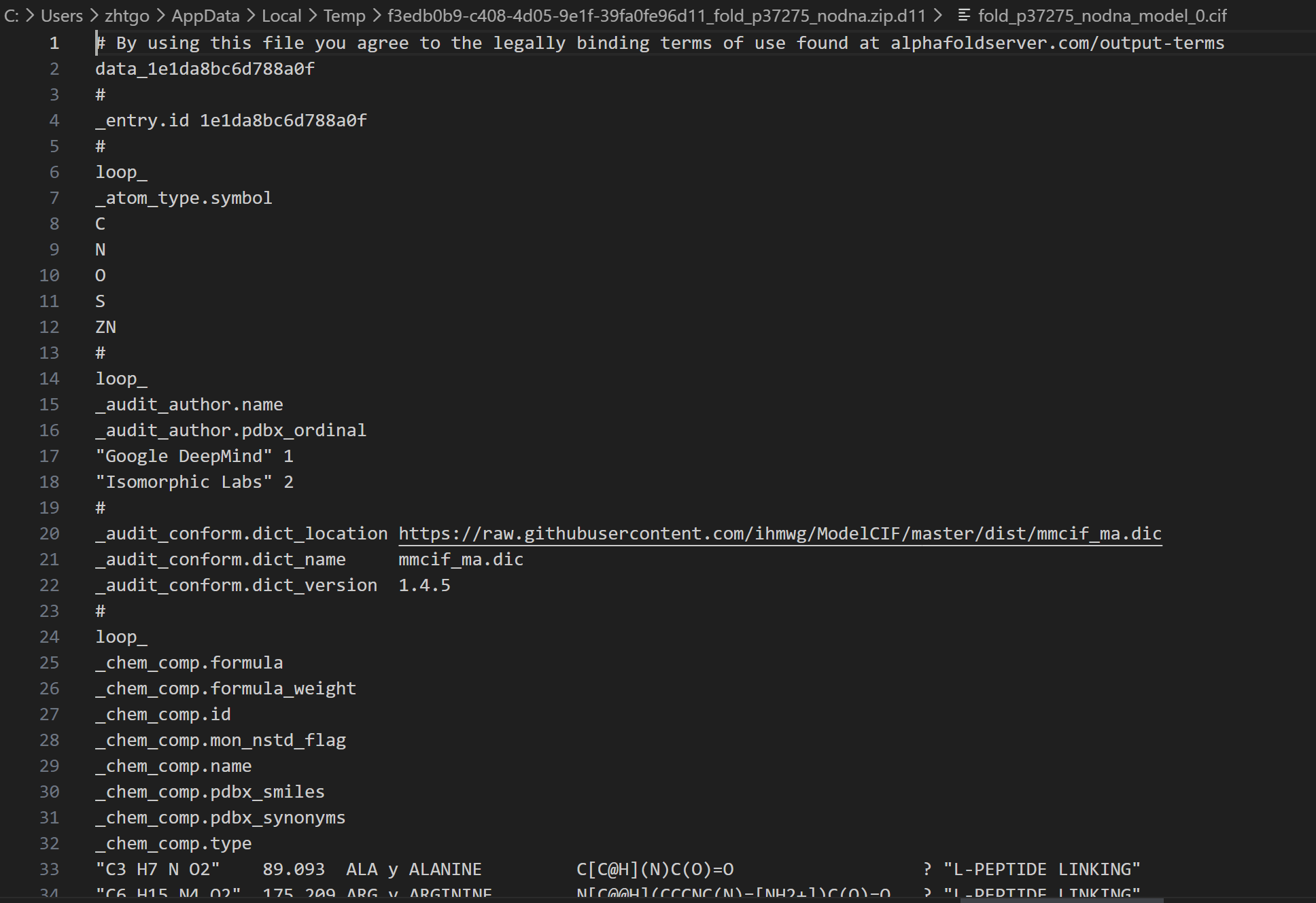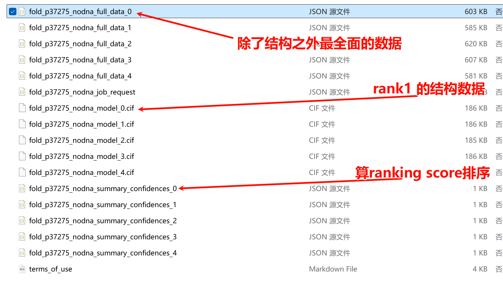 至于model的cif文件,其实就是预测结果的结构坐标文件