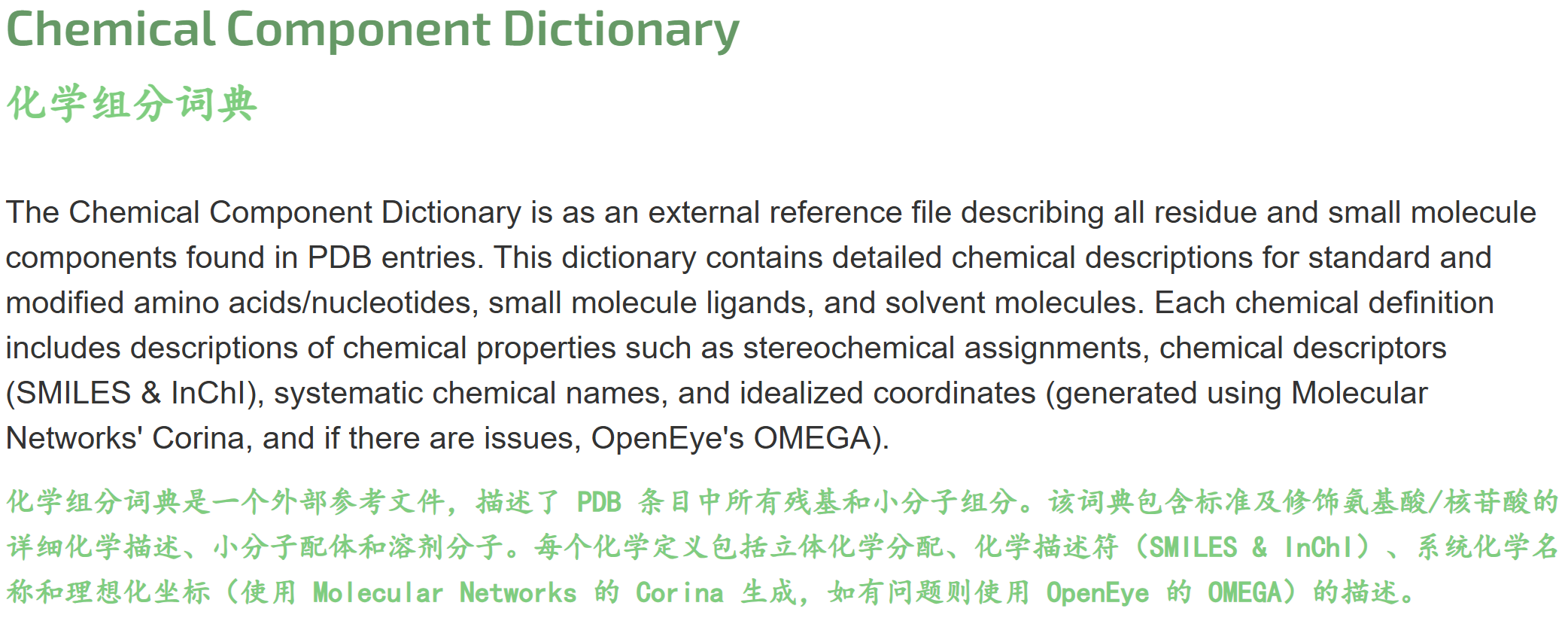 关于化学成分词典,参考PDB官网:https://www.wwpdb.org/data/ccd