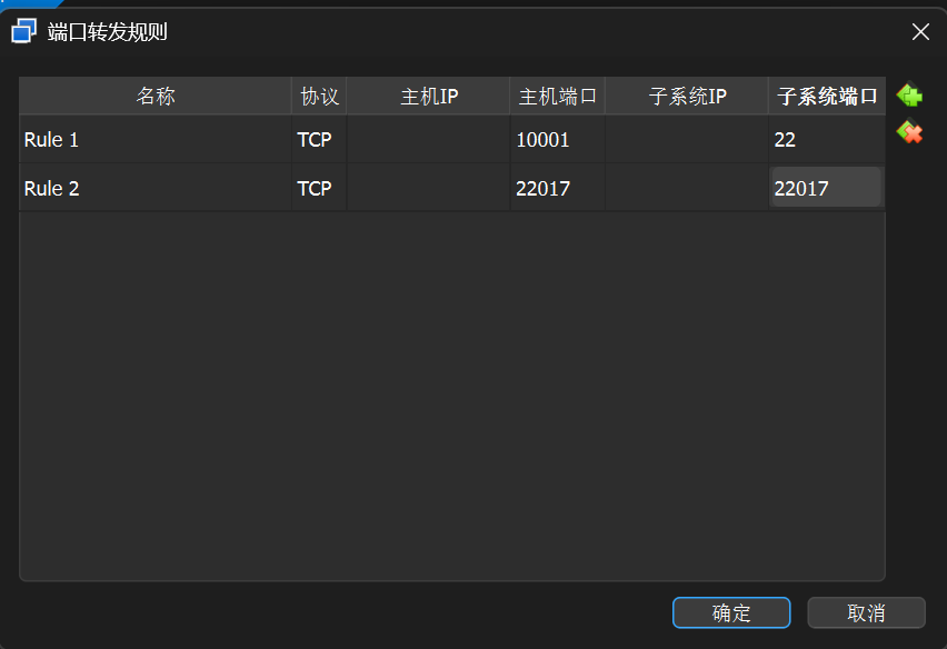 配置信息如下图,进行转发端口,在本机内部直接连接使用: