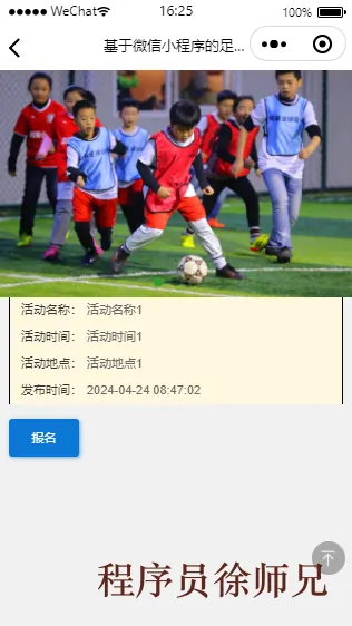 "活动报名"模块允许用户查看自己已经报名的活动和正在开放报名的活动。在该模块,用户可以看到一个分为"已报名活动"和"可报名活动"的双标签页面。在"已报名活动"标签下,显示用户已经报名的活动列表,用户可以查看活动详情或取消报名。在"可报名活动"标签下,展示所有当前可报名的活动,用户可以通过点击活动旁的"报名"按钮,填写必要信息后完成报名过程。活动报名功能效果图如图4-3所示。