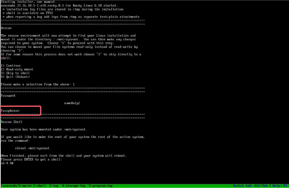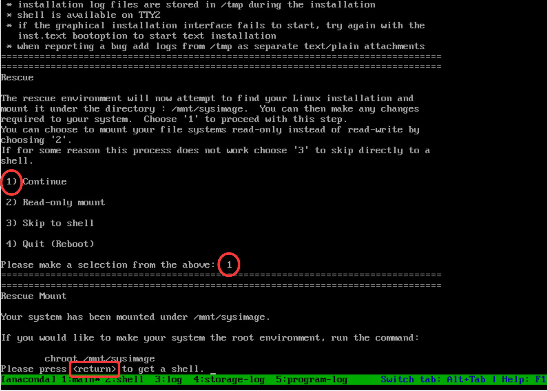 bashsh-4.2# chroot /mnt/sysimage bash-4.2# mount | grep root /dev/mapper/centos-root on / type xfs (rw,relatime,seclabel,attr2,inode64,noquota ) -