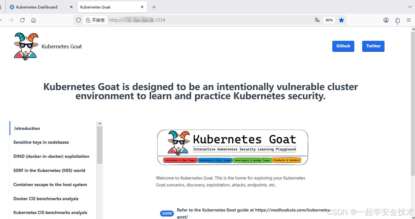 三、搭建k8s-goat靶场,并参考官方文档和课件完成dind等场景的练习