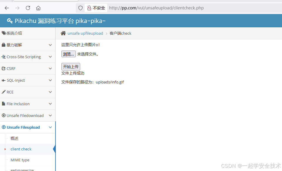 靶场页面(客户端验证文件类型):http://pp.com/vul/unsafeupload/clientcheck.php