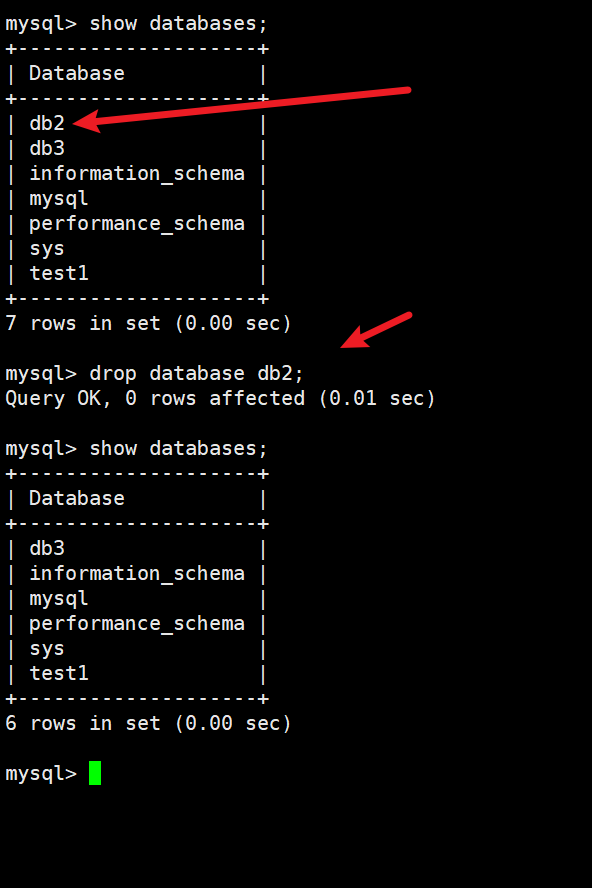 DROP DATABASE [IF EXISTS] db_ name;字符集或校验规则。