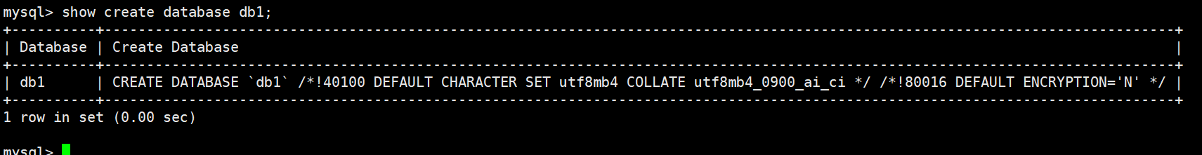 注意: 如果创建数据库时未指明数据库的编码格式或校验规则,则默认使用MySQL配置文件中对应的编码格式或校验规则。