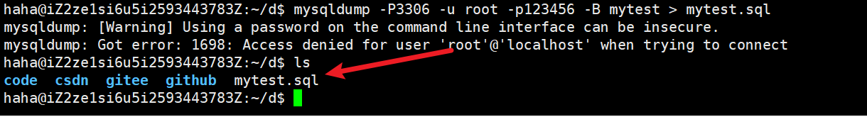 mysqldump -P3306 -u root -p123456 -B mytest > mytest.sql