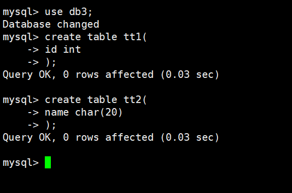 为了演示数据库备份,下面我们在前面创建的db3数据库中创建两个表。如下:
